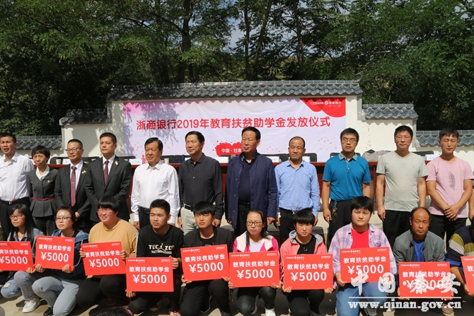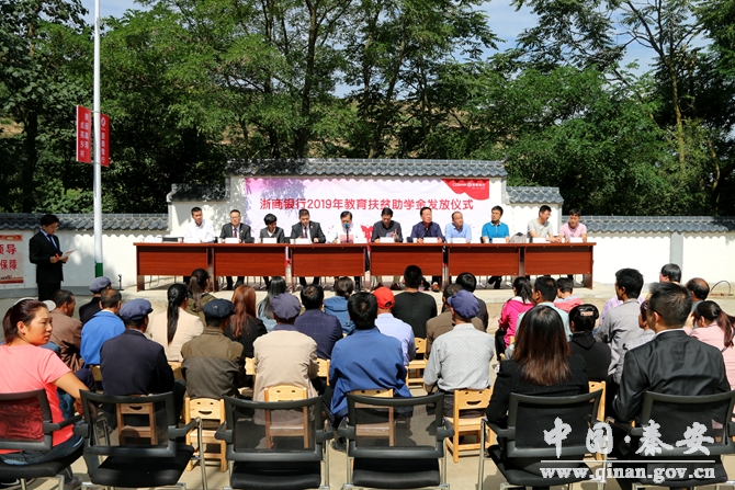 8月27日上午,浙商银行兰州分行和浙商银行嘉兴海宁支行在秦安县王铺镇高湾村举行了2019年教育扶贫助学金发放仪式,为王铺镇高湾村考上大学的14名贫困学生每人捐助了5000元助学金。