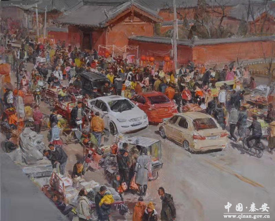 据了解,“第十三届全国美术作品展览”由文化和旅游部、中国文联、中国美协共同主办,此次全国美术展从全国分展区选送的1000多件作品中,秦安县青年油画家蔡晓斌的《秦安县的正月十三》、焦全的《丝绸之路—忙碌的尕马子系列之三》在入选的595件作品中脱颖而出,成功入选。全国美展五年一届,办展周期长,入选标准高,是我国规模最大、参与范围最广、作品种类最多、最具影响力和权威性的国家级综合性美术大展。