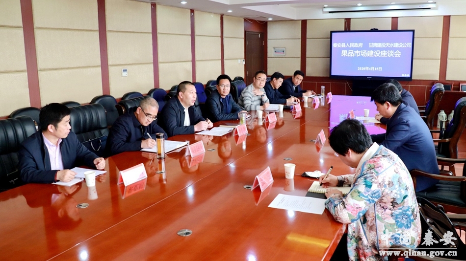 4月15日,秦安县召开果品市场建设座谈会。甘肃建投天水建设公司总经理张丰川,秦安县政府副县长李东海参加座谈。