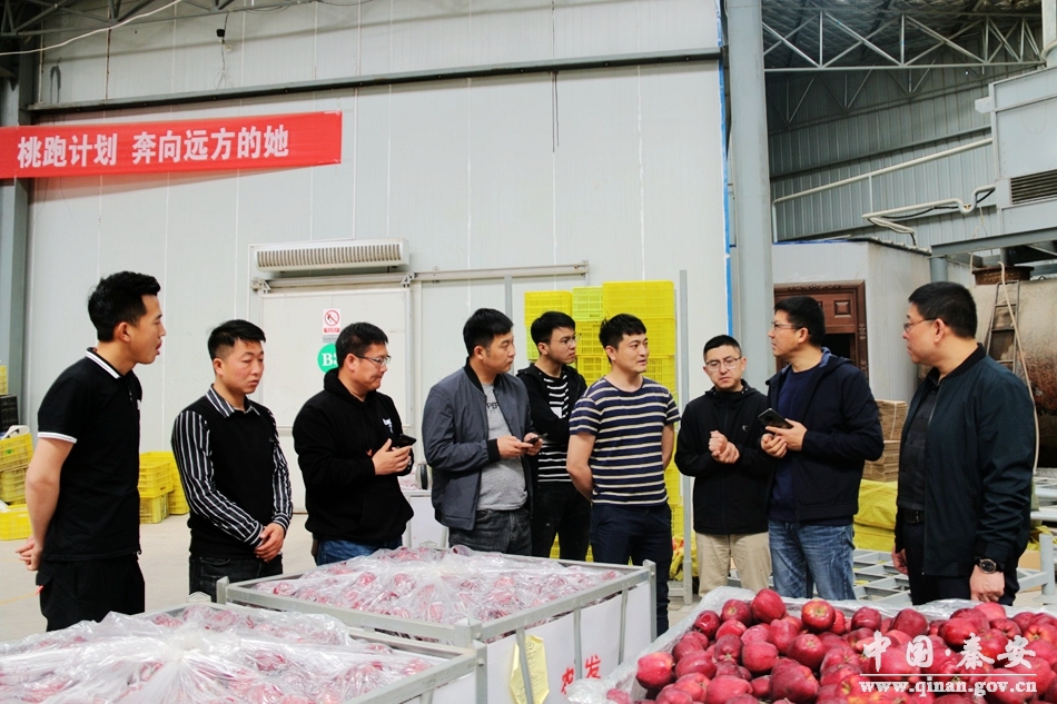 考察团一行先后来到刘坪镇何湾村万亩桃园、秦安县新润农业科技开发有限公司,通过现场参观考察、听取介绍等方式,详细了解了秦安县电子商务发展情况、对接产业发展及建立地理标志农产品旗舰店事宜,并就企业在线上线下经营过程中遇到的问题和困惑进行了交流探讨。考察团指出,近年来秦安县创新推出的“北京7号、秦安富士”等农副产品受到广大消费者的青睐和各大主流媒体的广泛关注。希望秦安县充分利用电子商务平台,继续创新方式方法,打通农村商业信息流通效率,实现创新农村经济发展。