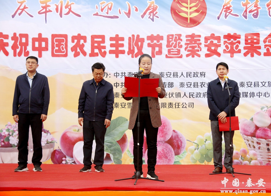 9月22日,秦安县庆祝“中国农民丰收节”暨秦安苹果金秋销售季启动仪式在秦安雪原果品有限责任公司举行。本次活动以“庆丰收、迎小康、展特色、促销售”为主题,通过农特产品展销、销售签约、消费扶贫等系列活动,进一步提升全县林果特色产业品牌,拓展果品销售市场,加快现代农业建设步伐,县委常委、宣传部长贾应蝶参加启动仪式并致辞,县政府副县长沈崴主持启动仪式。