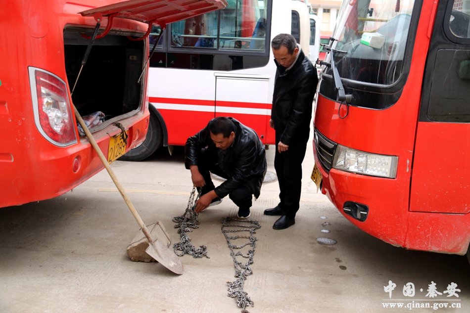 秦安县汽车北站副站长蔡国林说:“车站对所有进站车辆严查防滑设施配备情况,制定冬季应急处置方案,随时准备应对突发事件。”