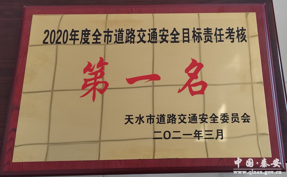2020年,在市委、市政府的坚强领导下和上级公安机关部门的精心指导下,秦安县道路交通安全管理工作坚持以习近平新时代中国特色社会主义思想为指导,深入学习贯彻省市道路交通安全工作会议精神,坚持以人民为中心的发展思想和生命至上、安全第一理念,坚持稳中求进工作总基调,紧紧围绕全市道路交通安全总目标,积极学习和借鉴先进县局交管工作经验,全力推进我县道路交通事故预防“减量控大”工作,不断提升道路交通现代化治理能力和水平,为群众出行和秦安经济社会发展创造安全畅通、和谐有序的道路交通环境。2020年,全县预防道路交通事故“减量控大”工作取得了初步实效,道路交通的“四项指数”呈现全面下降,在全市道路交通安全绩效考核中名列第一。
