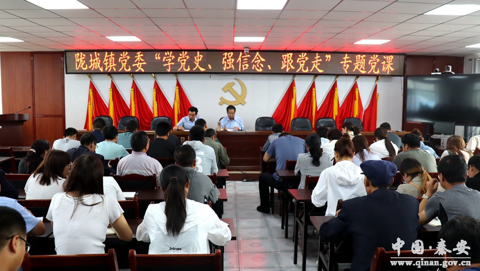 6月24日,秦安县人大常委会主任李宽余到陇城镇开展党史学习教育宣讲专题党课。陇城镇政府机关全体党员干部参加了党课教育学习活动。