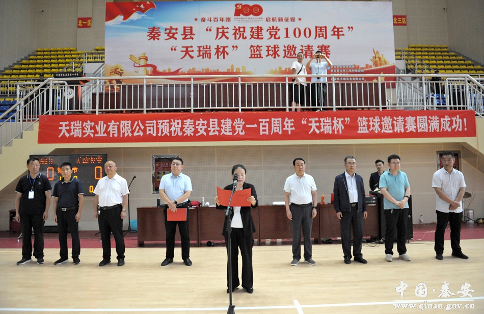 为庆祝中国共产党成立100周年,进一步丰富全县群众的文化体育生活,倡导健康生活理念和生活方式。6月25日,由秦安县委宣传部、县文体广电和旅游局、县教育局联合主办,秦安县天瑞实业有限公司承办的秦安县“庆祝建党100周年”“天瑞杯”篮球邀请赛在秦安一中体育馆隆重开幕。秦安县委常委、宣传部部长贾应蝶、县政府副县长丁迟成参加开幕式。