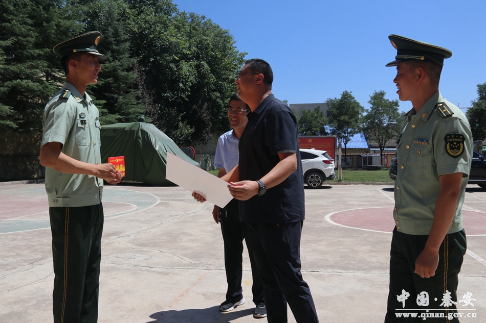 7月30日,在八一建军节即将到来之际,秦安县委副书记、县长候选人王龙强来到秦安县武警中队走访慰问,向部队官兵致以节日的问候和真挚的祝福。