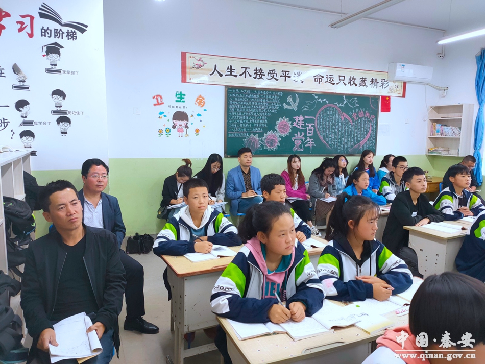 同时,三棵树中学还邀请了位峰学校、好地中学等学校的骨干教师一同听课研讨。目的是通过现场的示范教学和说评课,把秦安县最先进的教学理念、思想、方法带到三棵树中学及周边学校,通过示范课、问题探讨、互动点评等方式,引导、帮助薄弱学校教师从实践中学习,在反思中进步,不断提高课堂教学水平,实现农村学校教育质量遍地开花的美好愿望。