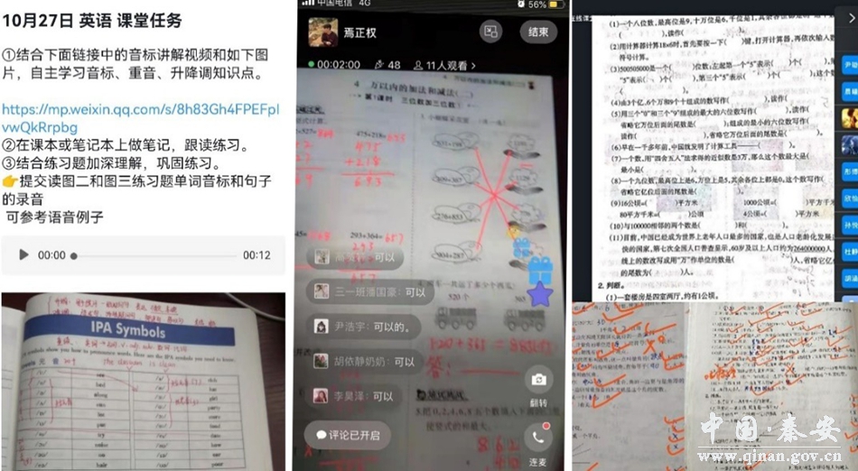 同心战疫,支教学生迎难而上。疫情期间,北京科技大学研究生支教团成员坚守岗位,利用国家中小学网络云平台、钉钉直播等方式进行了对三所学校近1000名学生进行线上教学,保质保量完成教学任务。同时,在教学过程中注重对学生的心理健康引导,尤其针对留守儿童等特殊群体,根据实际情况采用一对一辅导,保证不让一个学生掉队。教学之外,研支团成员充分发挥自身优势,以实际行动参与防疫工作:在陇城镇支教的杨文龙、刘硕响应当地政府号召,扛起大旗,走街入村,进行防疫政策宣传;在王尹镇支教的贾宜珍、焉正权主动参与王尹镇街道清扫工作,对全校进行彻底消杀,并自觉承担起疫情期间的值班任务;在兴国镇支教的曹震、郑子晗积极响应秦安县的疫情防控政策,得知宿舍被确定为集中隔离点之后,凌晨4点搬出宿舍,并将自费购买的移动式洗澡机提供给隔离区的医护人员使用。