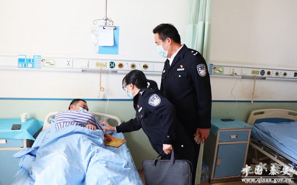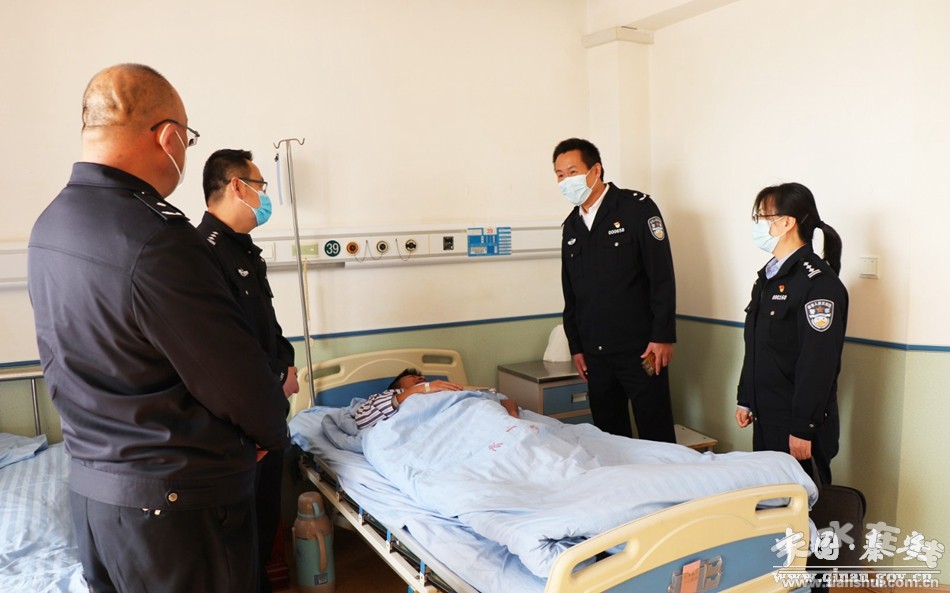 天水市公安局党委委员、副局长霍宝珊,政治部负责人韩慧敏,督察支队支队长杨杰和秦安县副县长、县公安局党委书记、局长薛天胜等一同慰问。