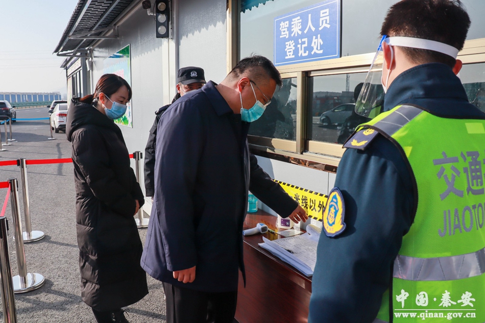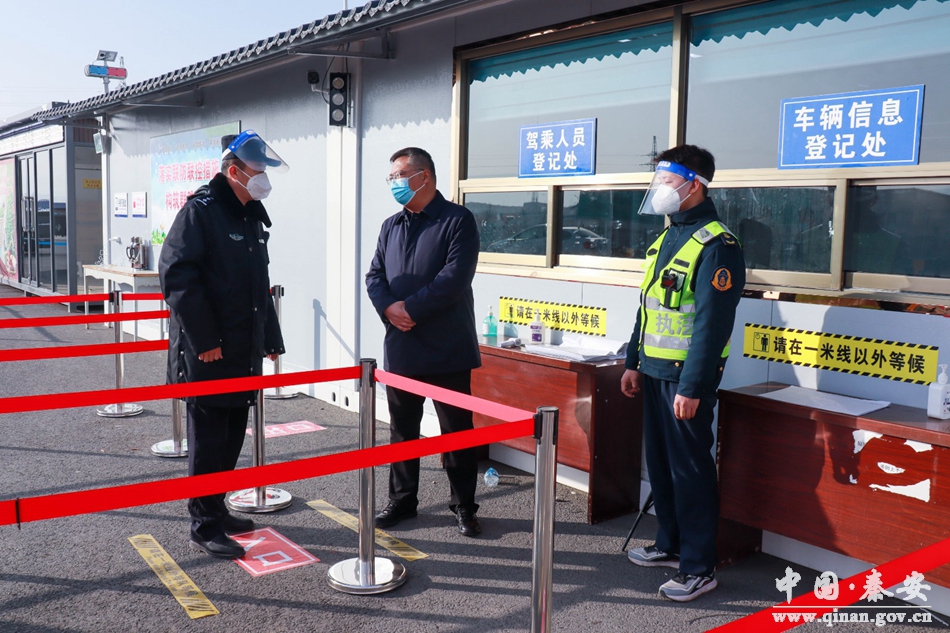 1月15日,秦安县委书记周济来到平天高速收费站督导检查交通卡口疫情防控工作。他强调,要深入贯彻落实习近平总书记关于疫情防控工作的重要指示精神,把坚决保护好人民群众的身体健康作为根本出发点,时刻保持高度警惕,严格落实“外防输入”各项防控措施,压紧压实责任,守牢把严卡口,全力守护好全县人民群众身体健康和生命安全。