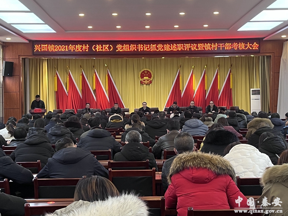 1月24日,秦安县兴国镇召开2021年度村(社区)党组织书记抓党建述职评议暨镇村干部考核大会。兴国镇全体领导,社区书记、副书记,村书记,镇干部共计160余人参加考核大会。