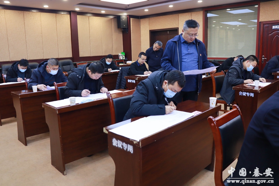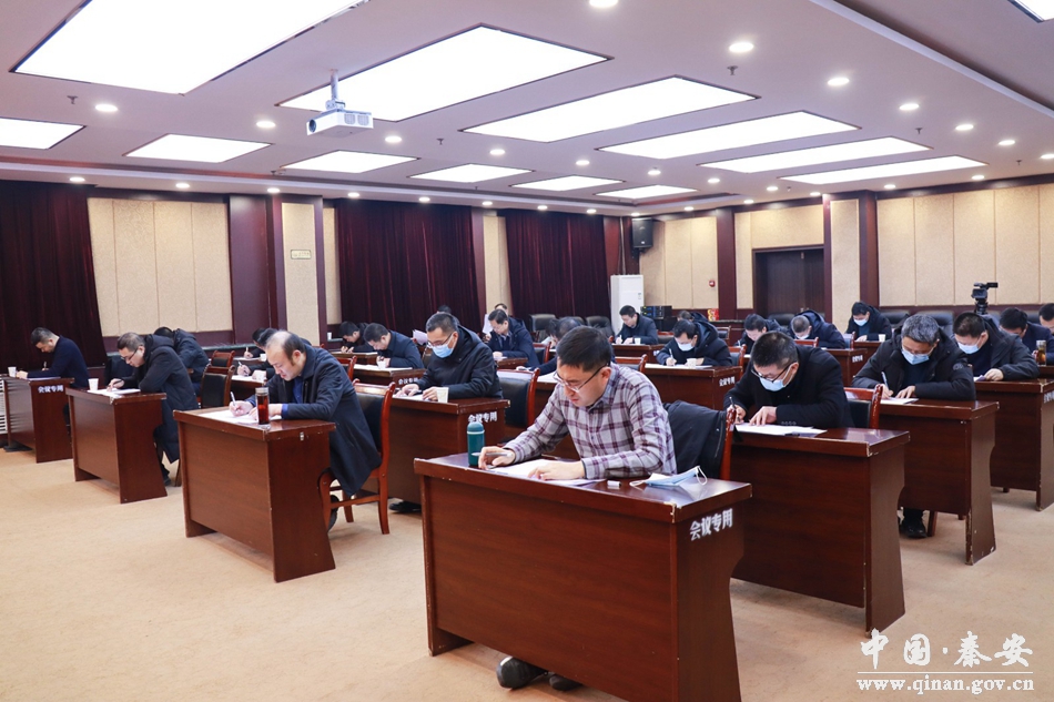 1月25日,秦安县举办各镇党政主要负责人政策理论知识测试。秦安县委书记周济,县委副书记姚建国全程参与监考。