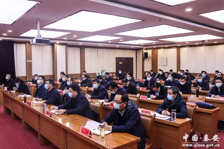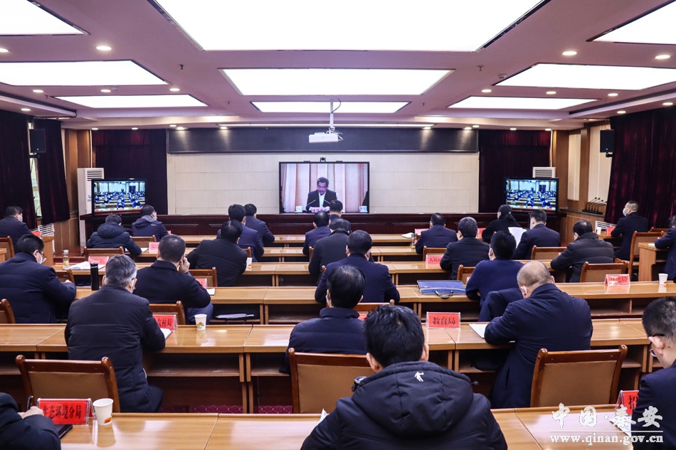 秦安县领导王龙强、张俊义、薛天胜、张涛涛、车晓珍及相关部门负责人在秦安县分会场收听收看了视频会议。