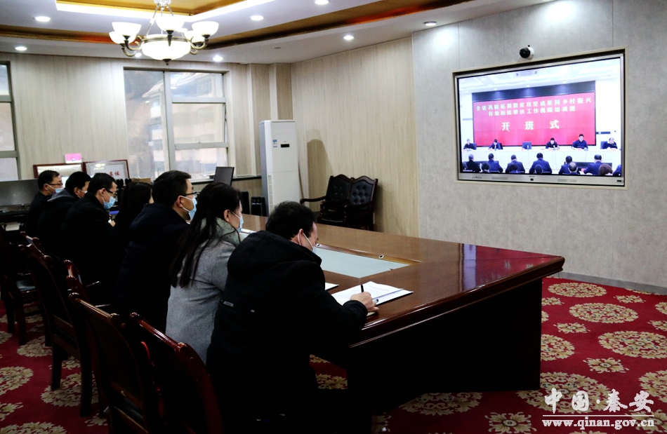 2月16日,全省巩固拓展脱贫攻坚成果同乡村振兴有效衔接帮扶工作视频培训班在兰州开班。秦安县委副书记曹晶瑜,县委组织部相关负责人、县乡村振兴局全体干部在秦安分会场收听收看视频会。
