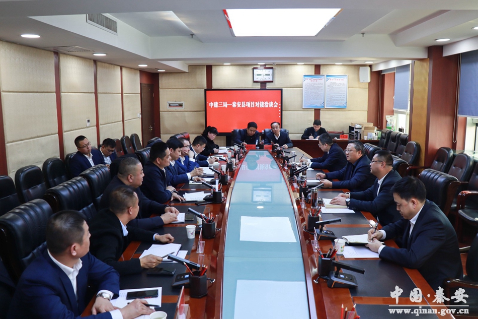 2月24日,中建三局西北分局总经理黄安平一行来秦安县对接洽谈项目合作事宜。秦安县委书记周济,县委副书记、县长王龙强,县领导许祖熙、张俊义参加对接洽谈会。