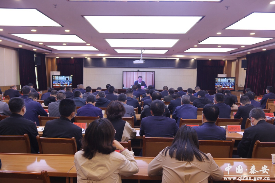 4月24日,全省“五一”期间新冠肺炎疫情防控工作部署会在兰州召开,秦安县领导薛天胜、张涛涛、陈雪松在秦安分会场收听收看会议。