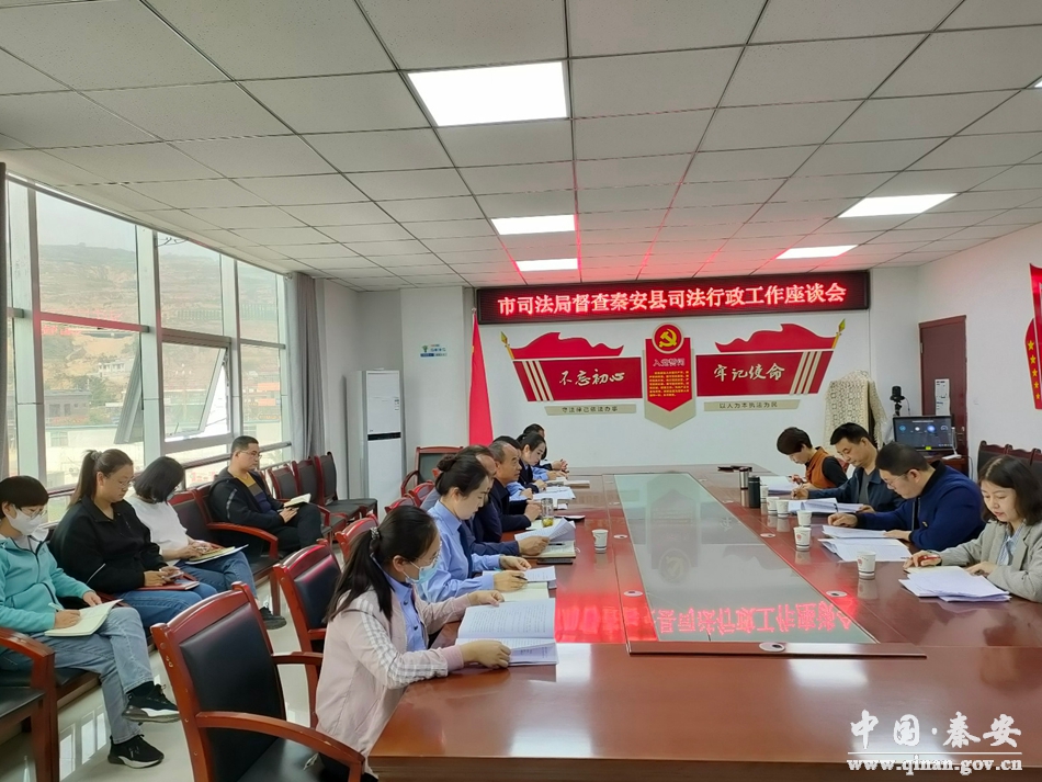 座谈会上,督查组一行认真听取了秦安县司法局领导班子就“一县一品牌”进展情况、“三亮”目标开展情况以及上半年重点工作落实等情况的汇报,对秦安县司法局开展全县司法行政系统作风建设年活动以及今年工作取得的成效给予了肯定。督查组要求,要持续用力,高质量完成年初目标任务;要突出特色,打造司法行政工作亮点;要齐心协力,进一步夯实基层基础。 秦安县司法局负责人在表态发言中表示,要聚焦示范创建,在实现行政执法示范单位创建上提标提质;要聚焦诉源治理,在化解行政争议上提标提质;要聚焦基层治理,在推动社会和谐稳定上提标提质;要聚焦作风建设,在队伍建设上提标提质。全面深化开展“民生复议”专业服务品牌,创新普法模式,着力构建数据一体化、管理智能化、互联移动化、指挥可视化的智慧矫正示范模式,全面推进“清廉司法”建设,进一步推动司法行政工作取得新成效。