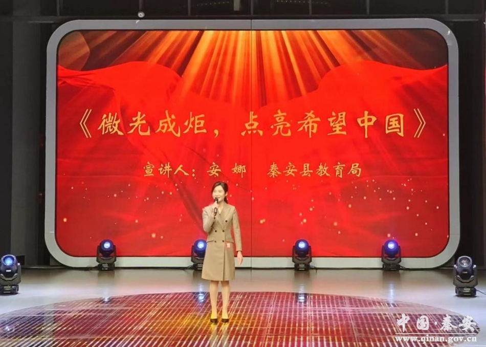 “好的演讲,一定是先打动自己,再打动观众。一开始准备参加宣讲大赛的时候,第一感觉是宣讲主题非常宏大,有点无处着手。但是经过认真思考,决定从自己切身感受到的我县近年来乡村教育事业的发展变化入手,讲好在党的领导下,秦安这方热土上乡村教育发生的令人振奋的故事,通过宣讲来激励我们的教师和学生勇担时代重任,踔厉奋发,接续奋斗,为实现中华民族伟大复兴的中国梦增光添彩。”安娜告诉记者。