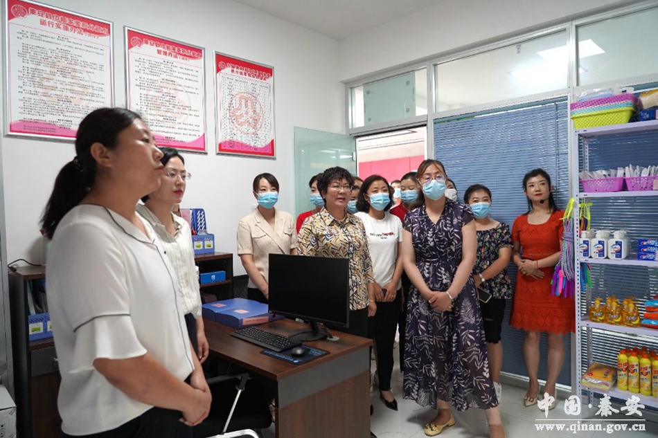 在何川社区,观摩团通过实地观摩、听取汇报、参观交流等方式,详细了解了秦安县“妇女之家”、妇女维权站建设以及“巾帼家美积分超市”建设运行情况,听取了社区相关负责人关于妇联基层组织建设、“家长学校”建设、“娲乡巧娘”孵化基地建设运行情况等特色工作介绍。