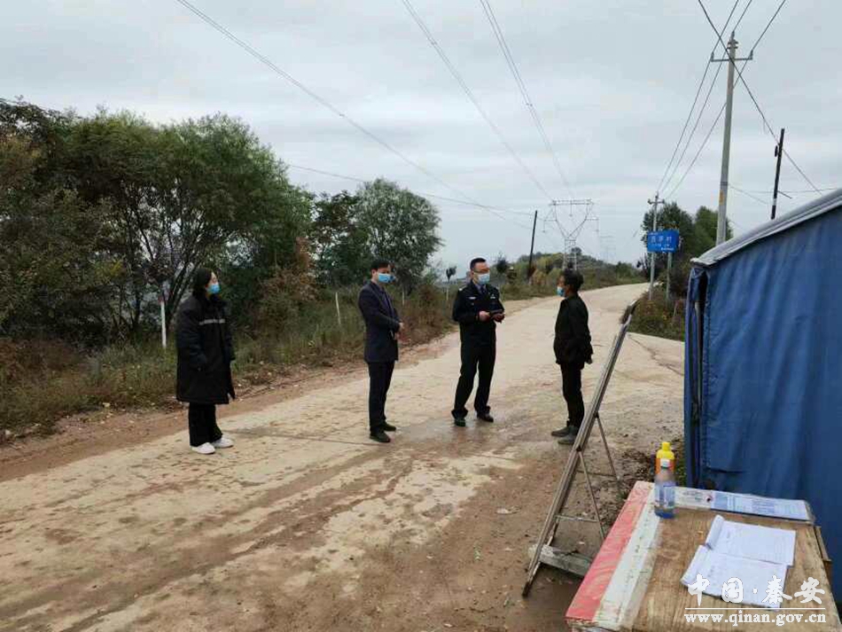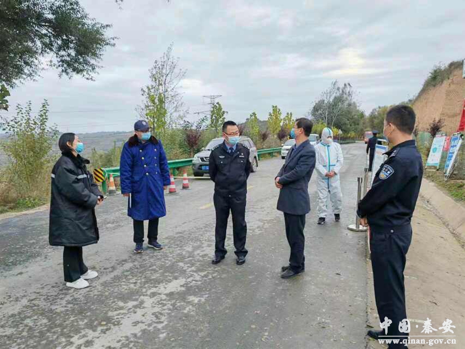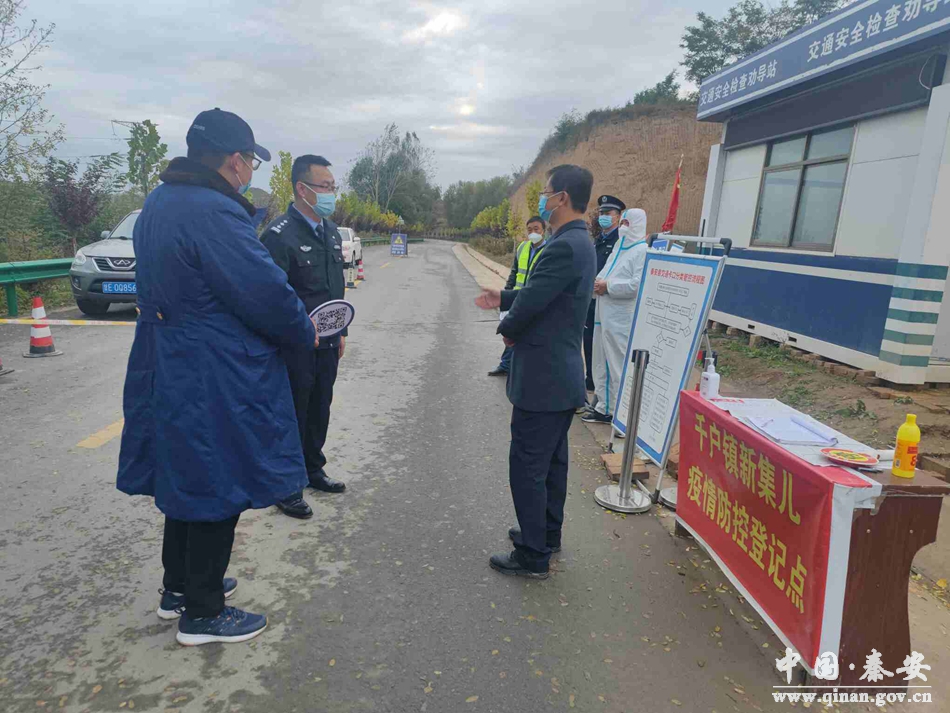 10月8日,秦安县政府副县长、县公安局局长薛天胜督查千户镇疫情防控工作。
