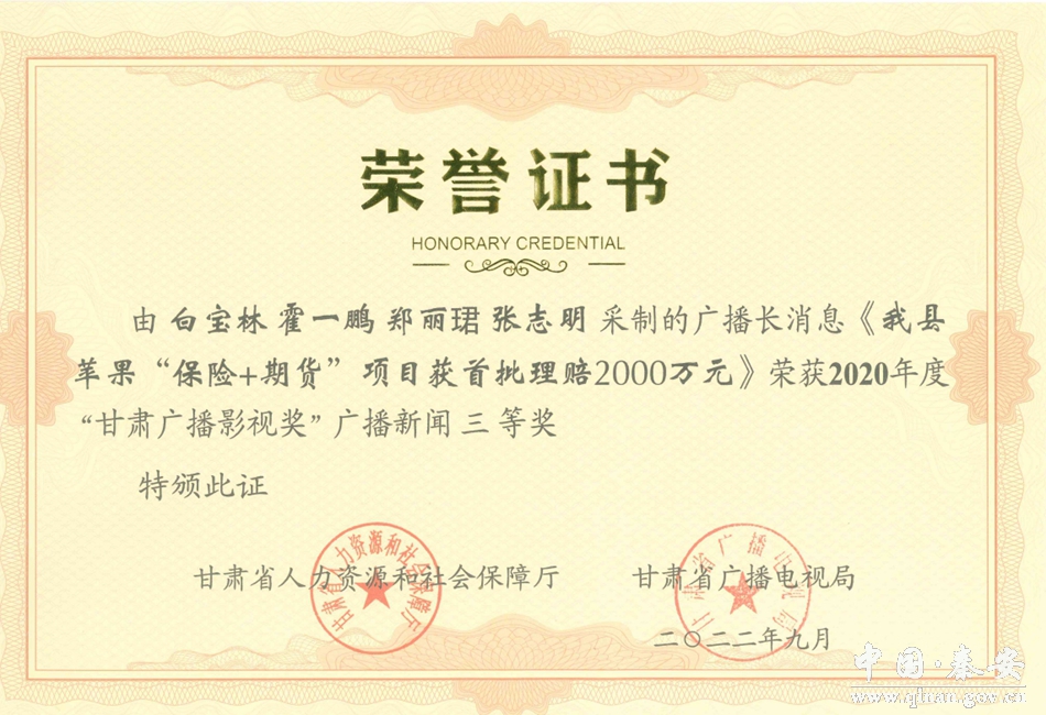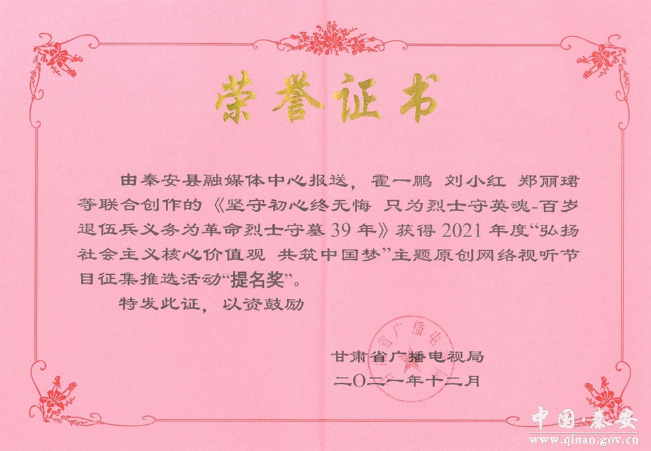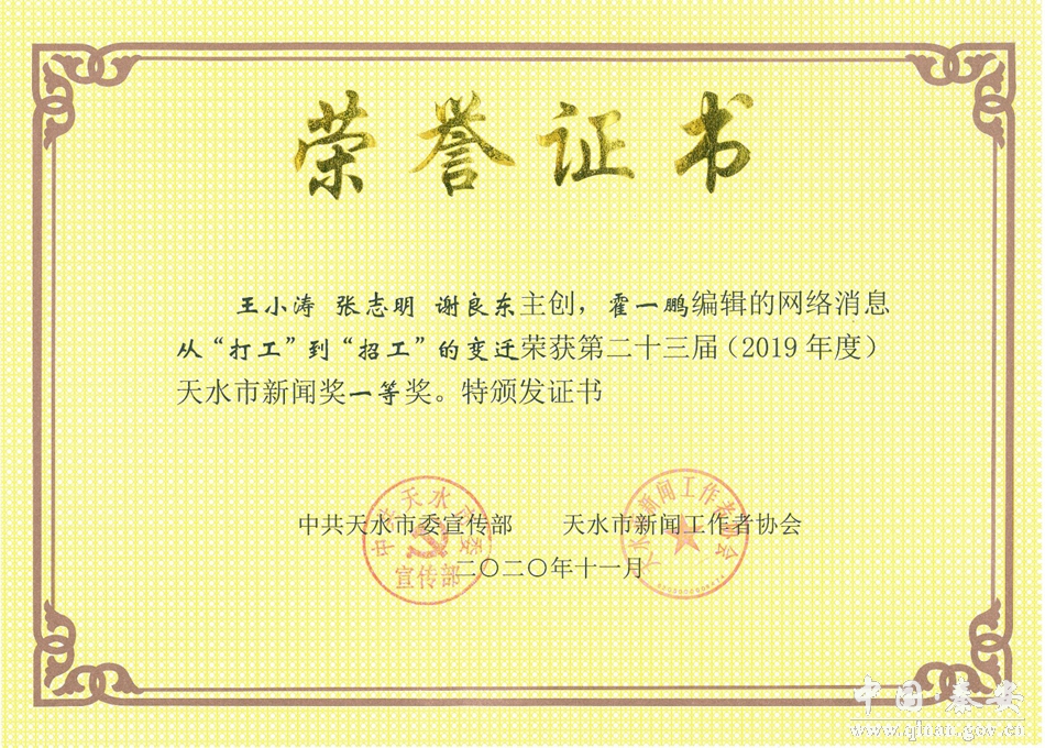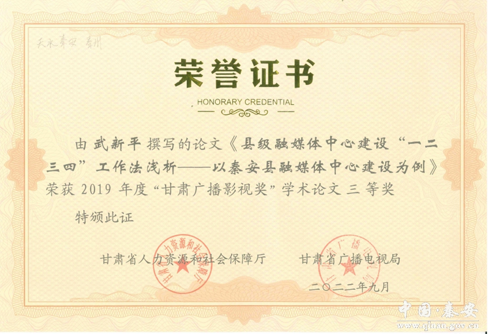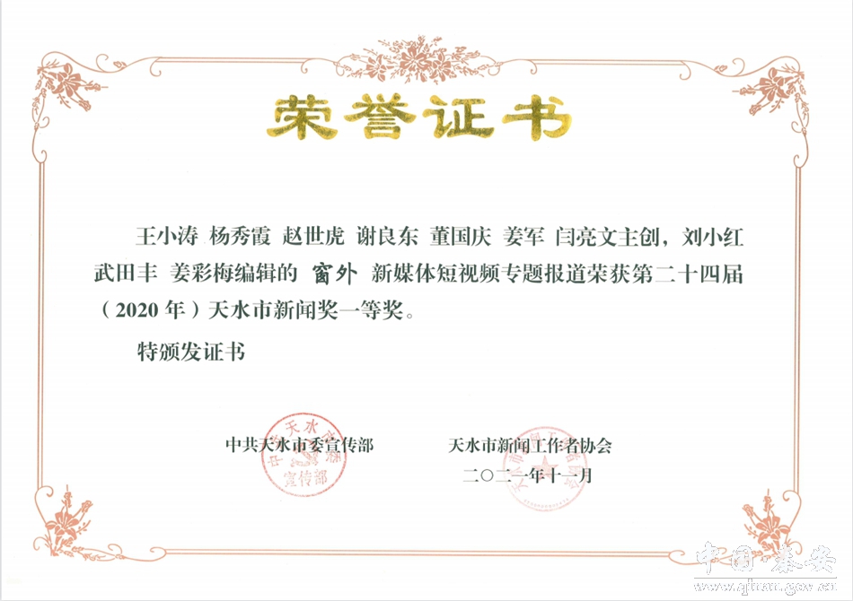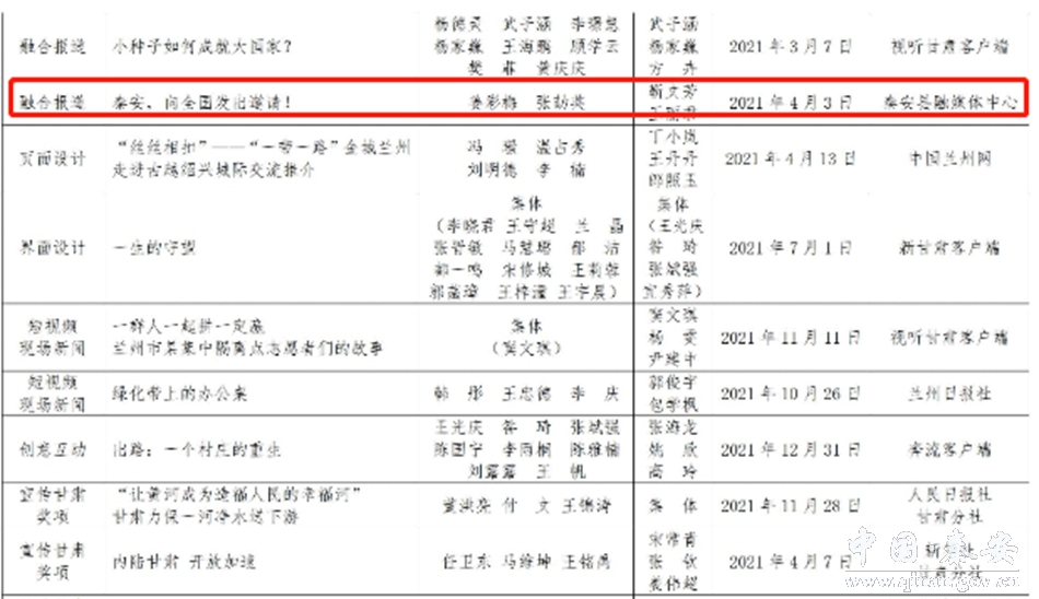 11月7日,2021年度甘肃新闻奖揭晓,秦安县融媒体中心选送的新媒体融合报道作品《秦安,向全国发出邀请》荣获一等奖。