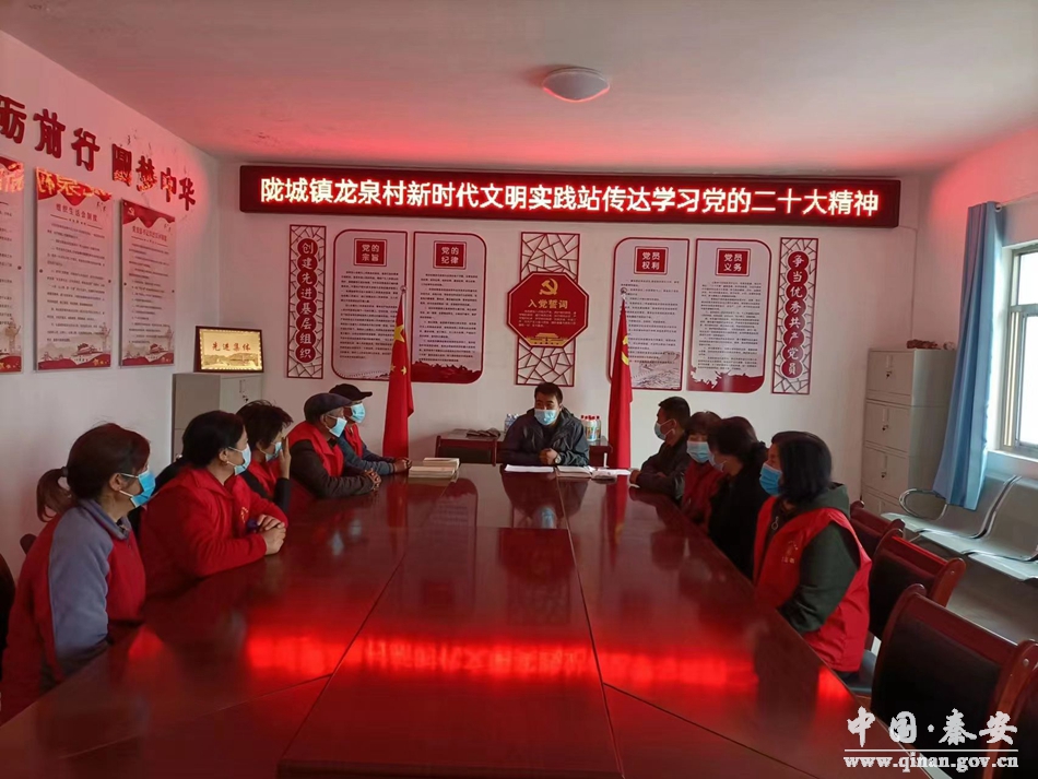 为深入学习贯彻党的二十大精神,让党的二十大精神“飞入”寻常百姓家。连日来,秦安县陇城镇新时代文明实践所(站)把学好、讲好、宣传好,学懂、弄通、落实好党的二十大精神作为当前和今后的首要政治任务,迅速行动、精心组织、周密安排,将学习党的二十大精神通过新时代文明实践站向全民延伸,掀起全民学习热潮。