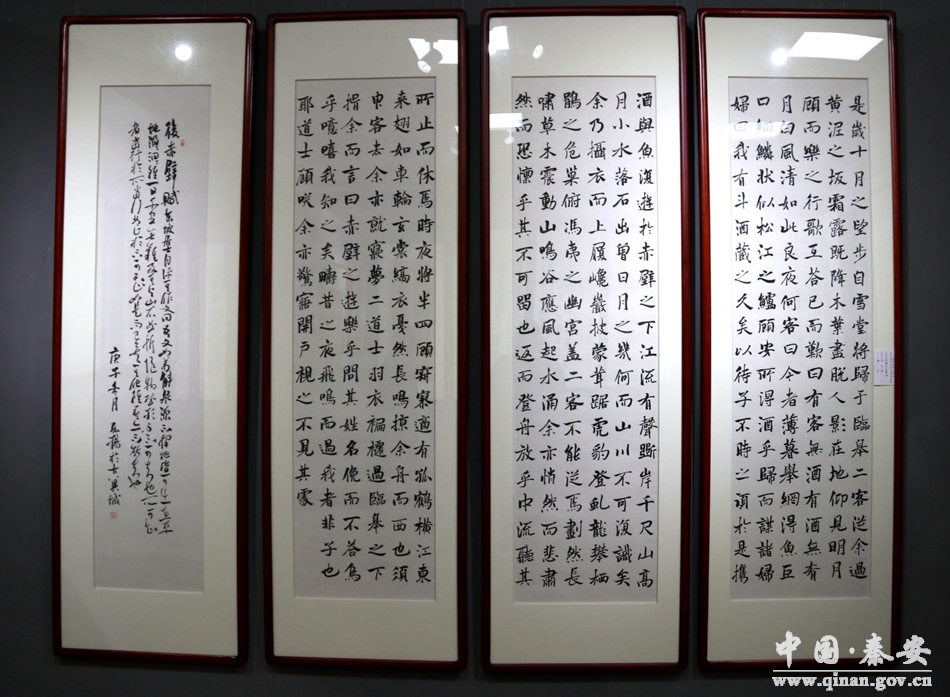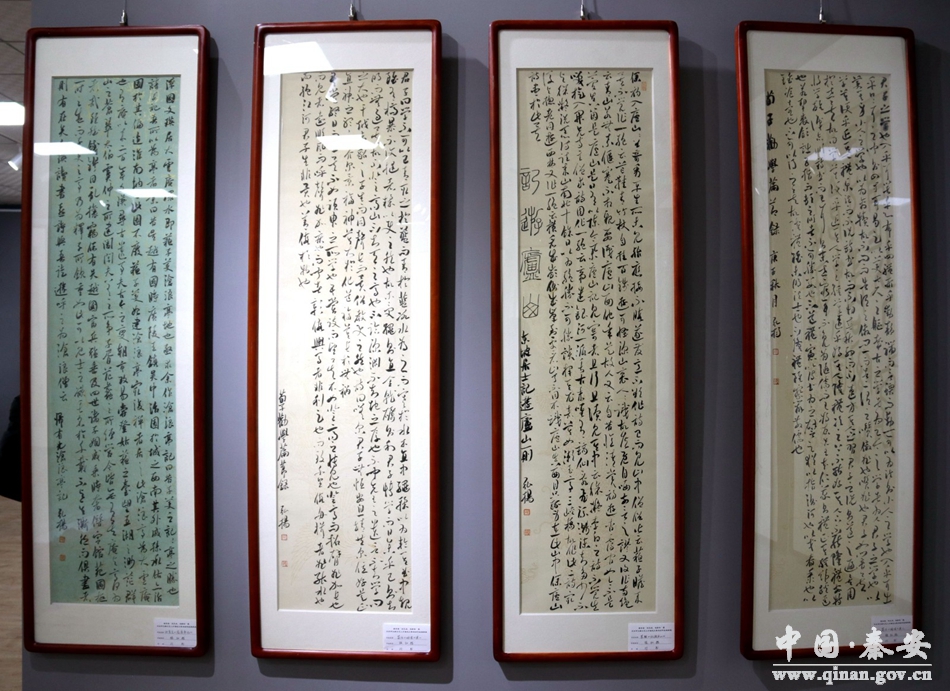 据了解, 此次书画展由天水市文学艺术界联合会、中共秦安县委、秦安县人民政府主办,县文体广电和旅游局(县文化馆)、县文学艺术界联合会承办,展出时间为12月30日至1月4日。展出赵世峰、张弘扬、张升、张旭瑞四位书法家作品96幅,作品力求体现个体思悟和创新意识、彰显书法艺术的文化品格,弘扬中华美学精神,力求达到以文立心,以字铸魂,呈现四人各自不同的艺术风格。