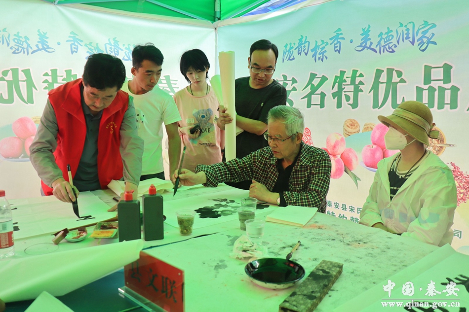 门插艾,香满堂,挥笔泼彩,翰墨书香。在中国传统佳节——端午节来临之际,6月19日,秦安县文联在凤山文化广场组织举办了“文艺进万家 健康你我他”文艺志愿服务活动。