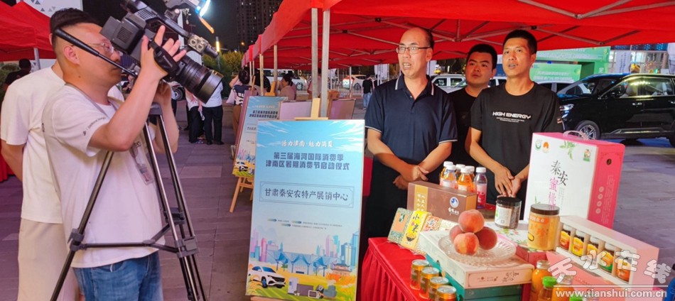 7月28日晚,“活力津南·魅力消夏”第三届海河国际消费季津南区暑期销费节在天津市津南区吾悦广场闪耀启幕,在对口帮扶地区特色农产品展销区,秦安县赴津南区挂职和跟班实训干部会同津南区对口帮扶甘肃·秦安农特产展销中心推出的秦安蜜桃,以个大、色艳、肉嫩、汁多、味美,赢得了参加活动领导、嘉宾和津南市民的广泛赞誉。