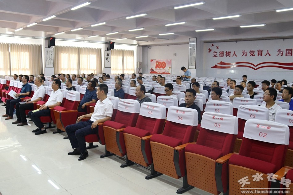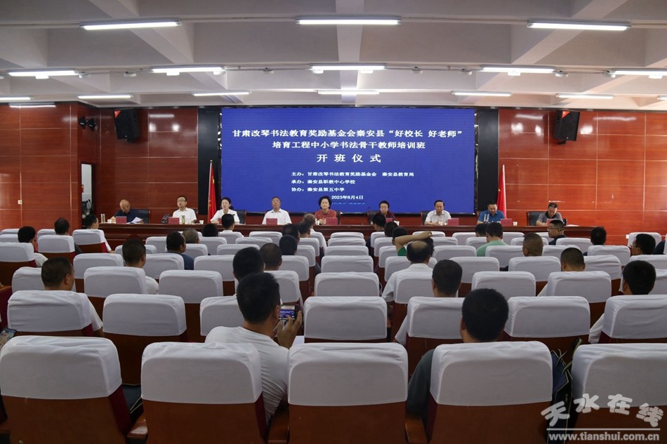 8月4日,甘肃改琴书法教育奖励基金会秦安县“好校长好老师”培育工程中小学书法骨干教师培训班开班仪式在秦安县第五中学举行。省文联副主席、中书协理事、省书协主席安文丽,甘肃改琴书法教育奖励基金会艺术顾问蔡保成、周天佑,中书协顾问、省书协名誉主席、甘肃改琴书法教育奖励基金会艺术顾问张改琴,秦安县委常委、宣传部部长常乐,县政府副县长张涛涛,县教育局、县五中负责人以及全县中小学书法骨干教师、学生等100余人参加开班仪式。