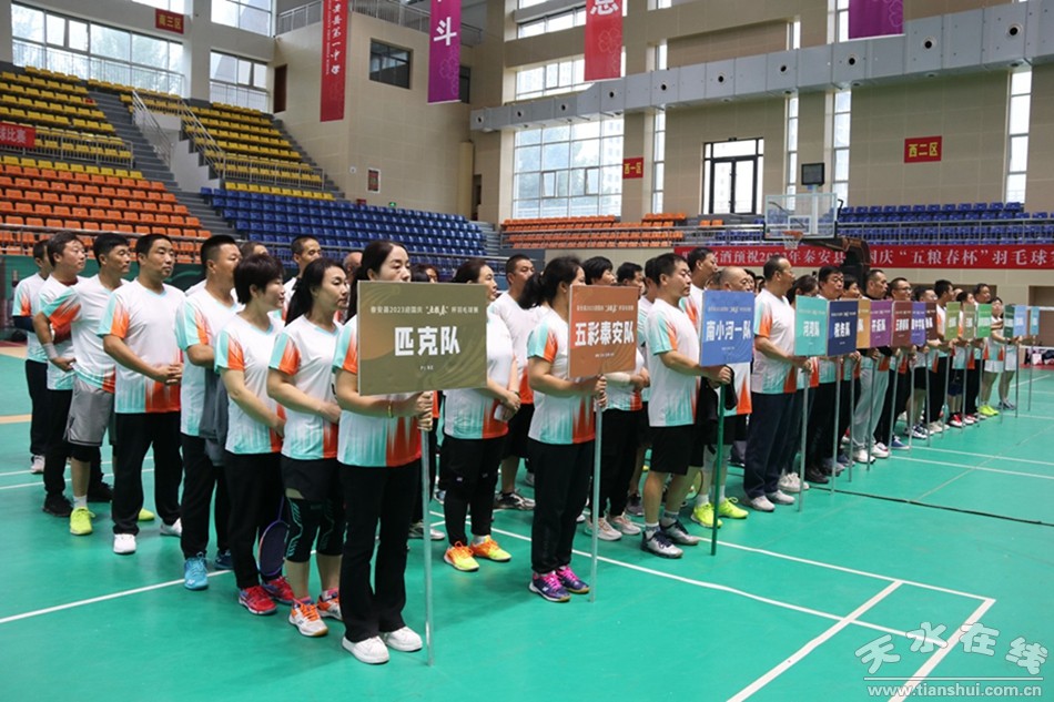 为更好地开展全民健身运动,推动羽毛球运动广泛开展,提升民众运动水平,9月25日,秦安县2023年迎国庆“五粮春杯”羽毛球比赛在县体育馆开赛。