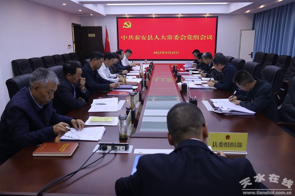 9月25日,秦安县人大常委会党组书记、主任马顺祥主持召开县人大常委会党组会议。县人大常委会党组副书记吴建忠,党组成员李永忠、孙旺奎、胡继仁、赵永红参加会议,县人大常委会副主任王蓉,县人大常委会办公室、各工委负责人列席会议。