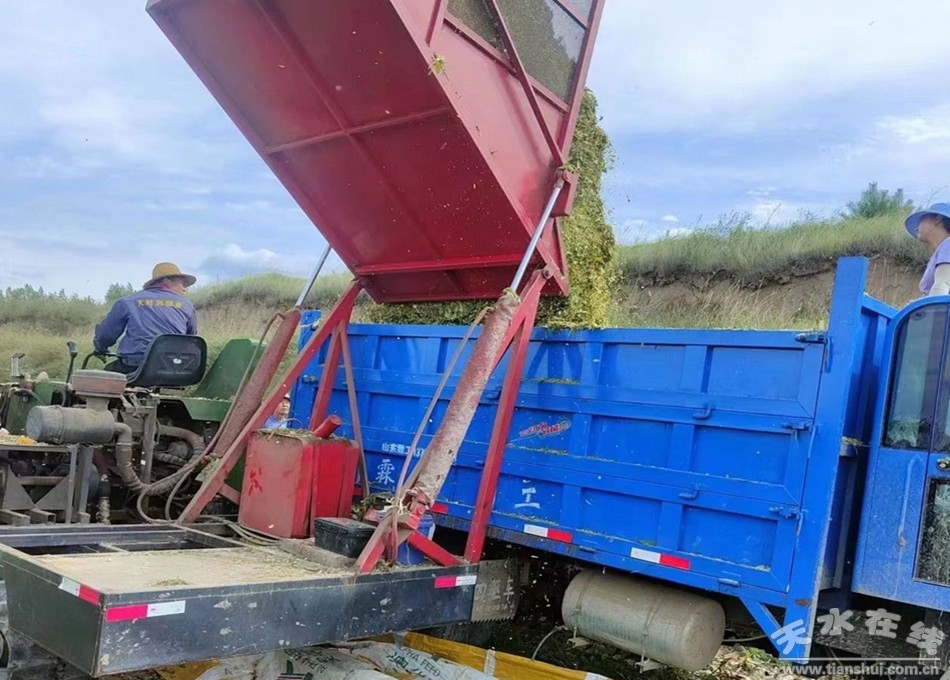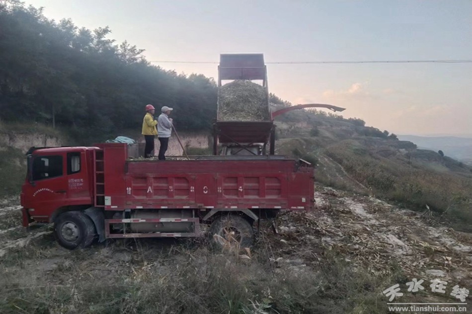 眼下,正是全株饲用玉米收获的季节,在秦安县各镇饲用玉米地里,轰鸣的收割机在田间来回穿梭,一行行玉米齐齐倒下,田间地头呈现出一派忙碌的景象。