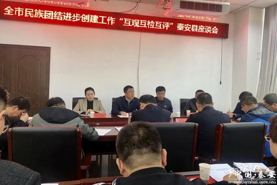 在召开的座谈会上,秦安县委统战部、县民宗局负责人汇报了全县民族团结进步创建工作开展情况,陇城镇、兴丰镇、王窑镇和凤山景区管委会负责人分别汇报了各自创建工作开展情况。检查组指出,秦安县第一小学的创建工作扎实有效,校长对创建工作的理解透彻,用小学生喜爱的、易接受的方式把铸牢中华民族共同体意识灌输给学生,具有很好的借鉴意义;兴国镇南关社区依托党群服务工作,为各族群众提供就业指导和就业信息,充分发挥了桥梁纽带的作用;乐邦职业技能培训学校长期以来开展着面向各族群众的各项就业技能培训工作,切实提高了秦安县及各兄弟县区各族群众的劳动技能,解决了就业问题;云山镇文化礼堂将党建、旅游、文创及民族团结等元素巧妙融合起来,将民族团结进步与乡村振兴工作同部署、同推进、同落实,积极探索“乡村振兴+民族团结”模式开展民族团结进步创建工作;甘肃秦融文化传媒有限公司探索的“融媒体+民族团结”的形式十分新颖,通过网络带货推动各民族共同走向社会主义现代化。同时,检查组各成员也对秦安县民族团结进步创建工作作了点评。