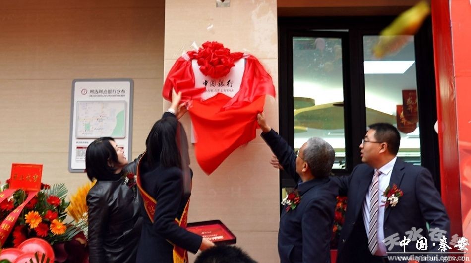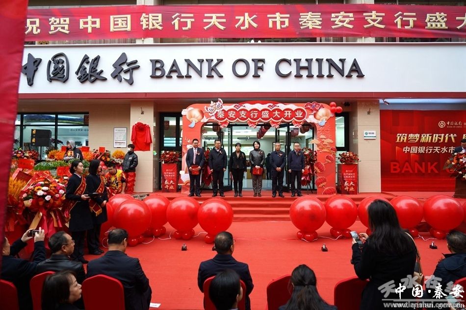 11月21日,中国银行秦安支行举行开业仪式。中国银行甘肃省分行党委委员、副行长唐鸿雁,天水分行行长任永职,秦安县委副书记、统战部部长姚建国,县政府副县长车晓珍及各相关单位负责人及企业代表参加仪式。