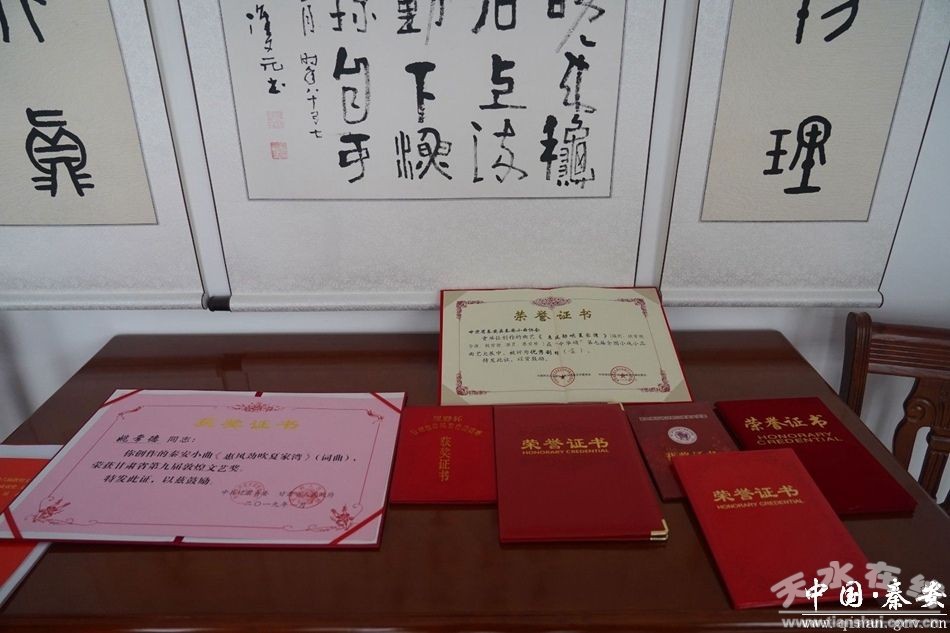 今年63岁的姚常德从秦安县文化馆退休以后,依旧难以割舍为之奉献了一辈子的秦安小曲,不断创作新曲目,并时常前往县文化馆,指导秦安小曲的排演及创作。