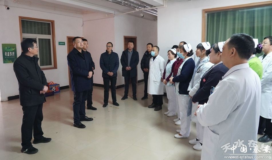 在县人民医院,王龙强与医护人员亲切交流,详细了解了医疗救治、接诊等情况,对全体医护人员的辛勤付出表示感谢。并嘱咐大家春节期间要加强值班值守,强化责任担当,一如既往地为患者提供优质的医疗服务,切实保护好人民群众生命安全和身体健康。