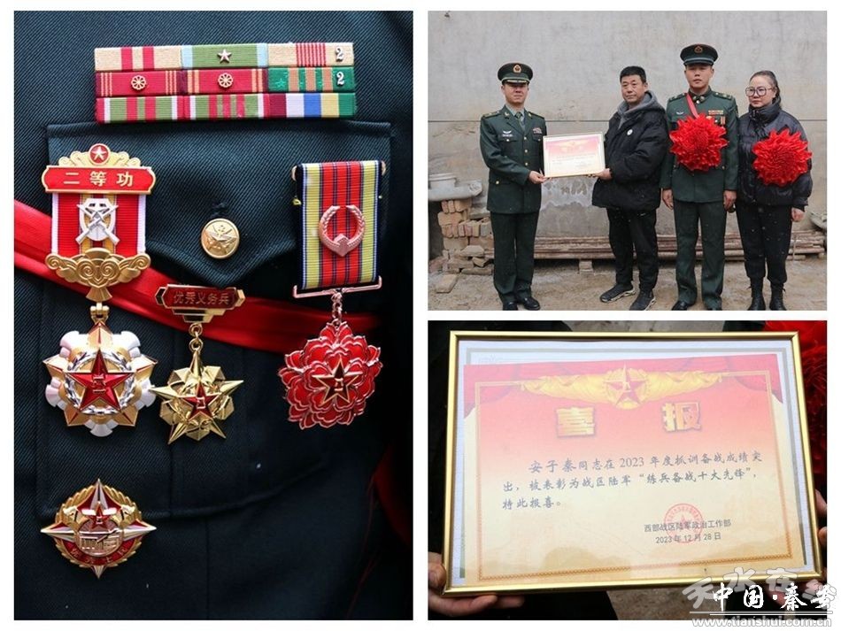 一人立功,全家光荣。2月7日,伴随着阵阵锣鼓声,服役部队送喜代表、秦安县人民武装部、县退役军人事务局、兴国镇政府相关负责人来到现役军人安子秦家中,将西部战区陆军“练兵备战十大先锋”喜报和牌匾送到安子秦本人和家属手中,并表示祝贺。