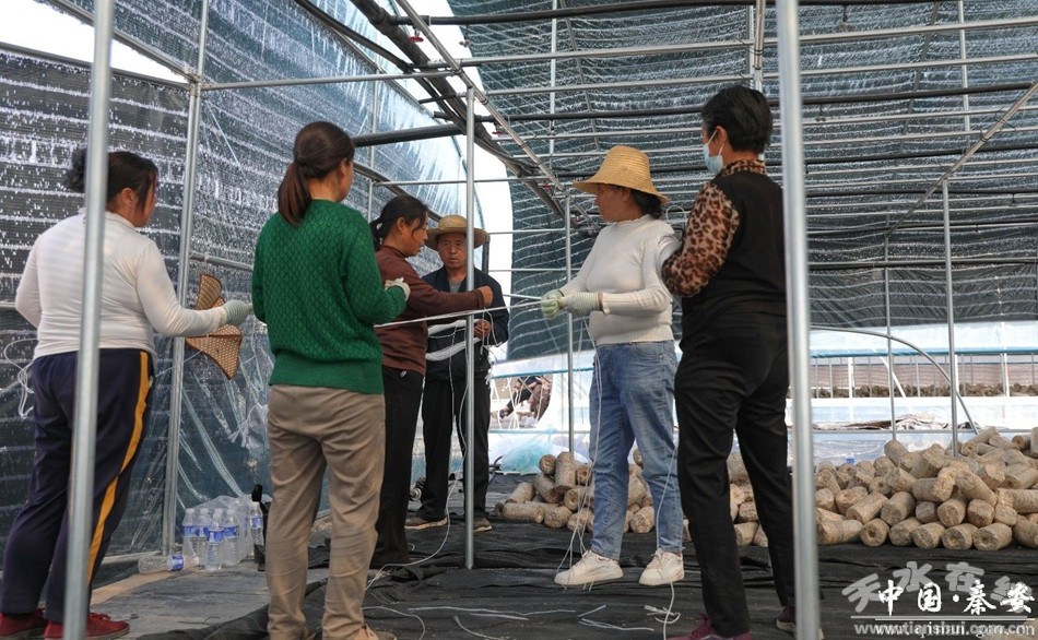 近日,记者来到秦安县兴丰镇黑木耳种植基地,只见工人们正在进行吊袋木耳种植的前期准备工作,焊接铁架、调直钢管、排线布管、装卸菌棒,一片热火朝天的忙碌景象。