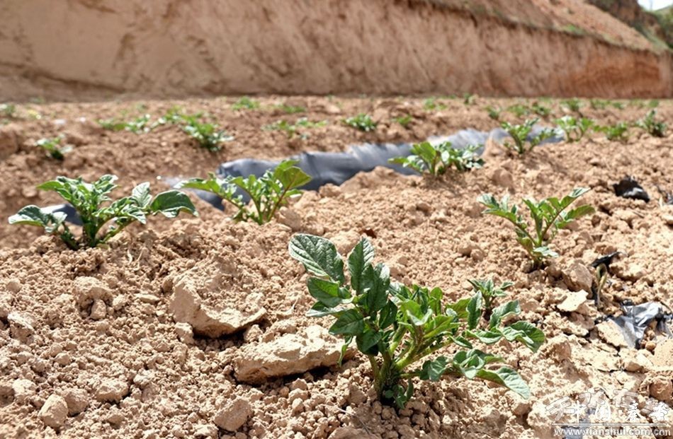 近日,记者在秦安县王铺镇神仙岭流域马铃薯产业园里看到,一亩亩田地已经起好垄、覆好膜,随着气温回升,一株株马铃薯嫩芽破土而出,田间生机涌动。