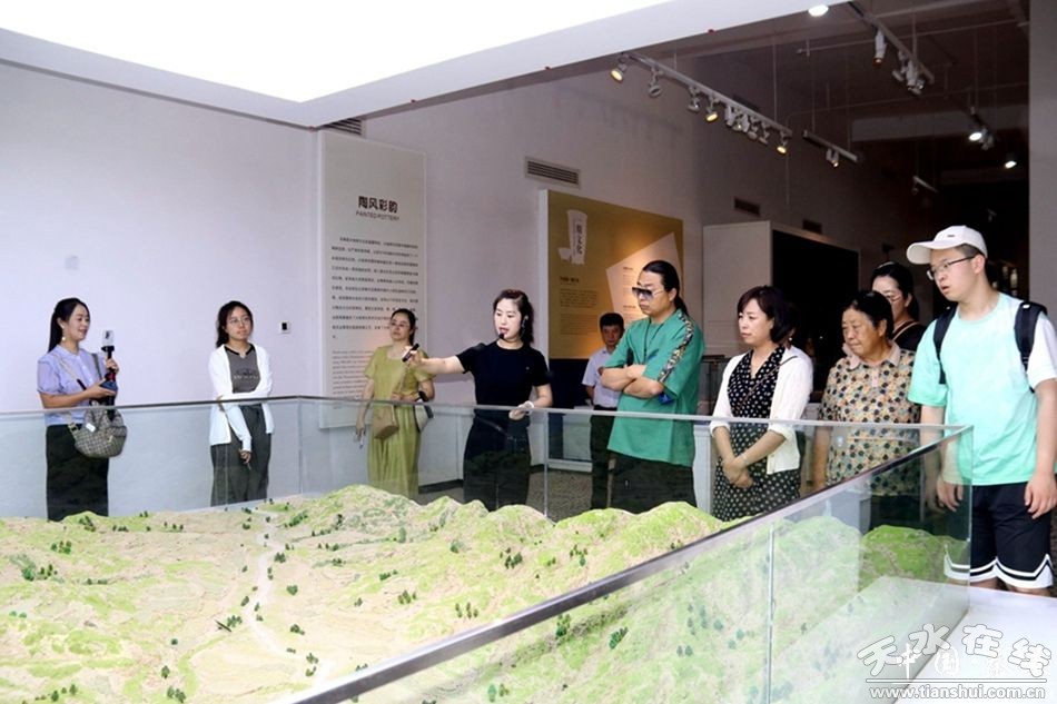 媒体团在大地湾博物馆和F301原始村落遗址,通过听取介绍、互相交流,详细了解了原始建筑、绘画艺术、农业起源、文字和宗教等多个方面的内容。一件件古朴精美、色彩绚丽的彩陶,其生动活泼的线条、变幻无穷的图案、造型与色彩的完美结合,深受大家的关注和喜爱。媒体团从生活、生产、观念、审美等各方面深刻领悟了大地湾先民们的智慧和辉煌。