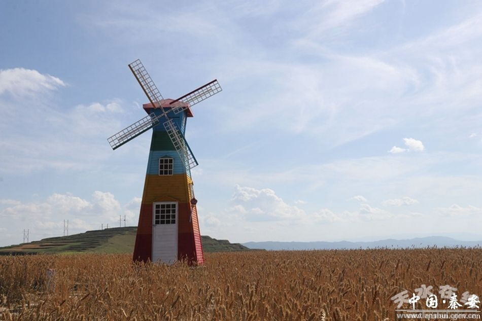 盛夏时节行走在秦安县云山镇S207省道,绿意醉人,麦浪滚滚。一路驾车驶入云山梁顶,周围山峰层峦叠嶂,脚下平坦开阔的沥青路向远处伸展,两侧延绵不绝的麦田,彩色风车、向云端、露营地等网红打卡点星罗棋布,吸引了众多游客前往游玩拍照。