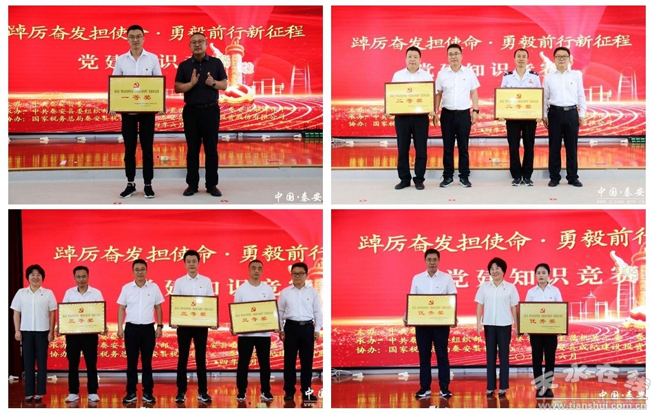 6月25日,秦安县“踔厉奋发担使命·勇毅前行新征程”党建知识竞赛总决赛在县税务局六楼举行。县领导夏子文、任云飞、景鹏、逯银霞参加活动并为获奖代表队颁奖。