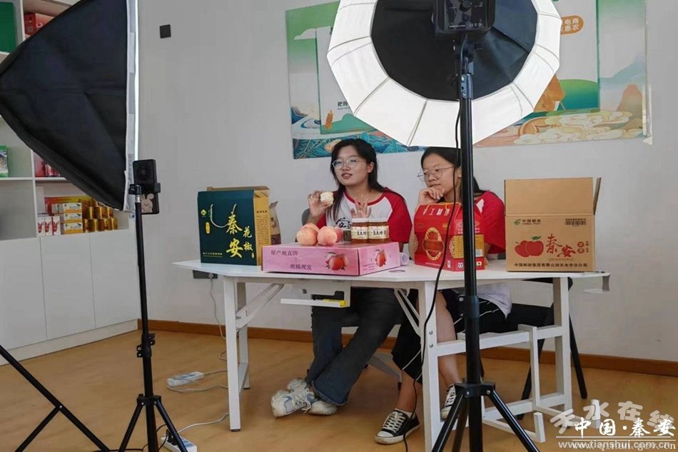 电商赋能,拓宽销路。实践团成员也走进直播间,化身为“乡村代言人”,将安伏的优质农产品直接呈现给全国各地的朋友。他们饱含热情,将水灵灵的“北京七号”蜜桃、麻香的秦安花椒等秦安县特产介绍给全国的朋友们,让他们能够真正了解到秦安县的特产,电商赋能秦安县农副产品销售。“学生直播比我们讲得要好,我希望他们能够帮助我们真正地推广咱们秦安县的特产,扩大咱们秦安县的知名度。”安伏镇电商直播中心的负责人这样说。