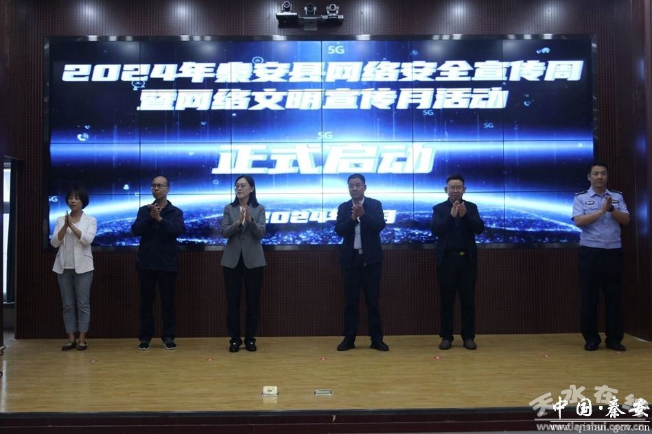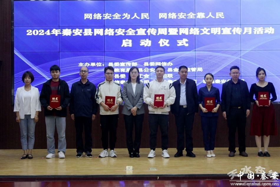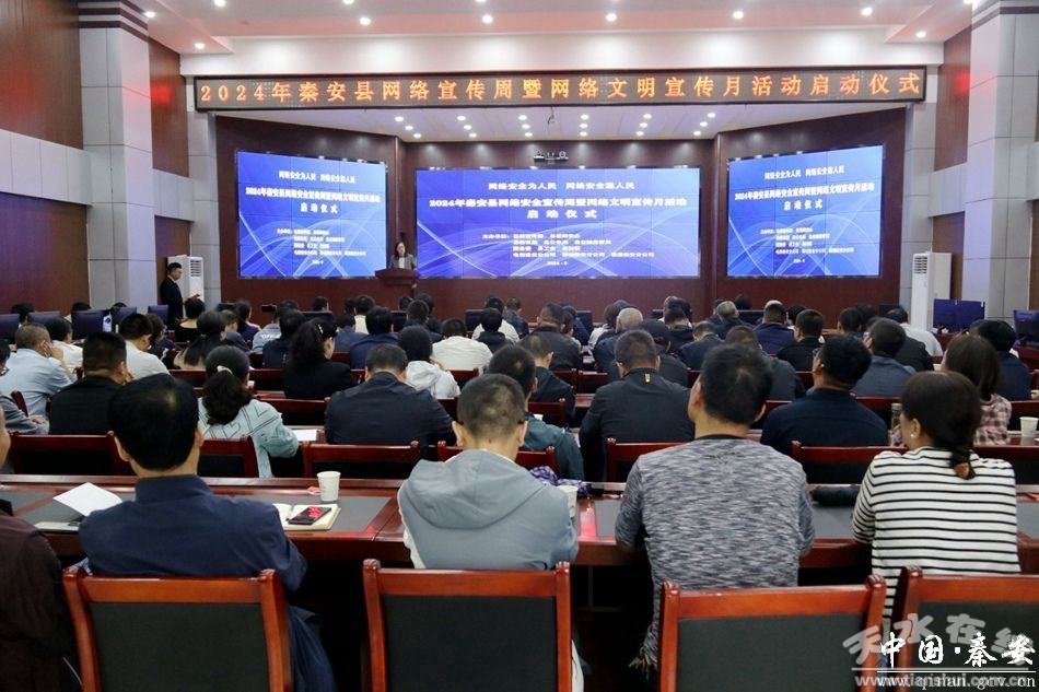 9月9日,秦安县2024年网络安全宣传周暨网络文明宣传月活动启动。县委常委、宣传部部长马昊莹,县人大常委会副主任宋军吉,县政协副主席王建锋及各镇、各部门分管领导,网络主播代表参加启动仪式。