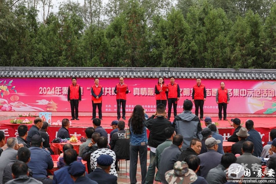 此次活动包括理论政策宣讲、中秋传统文化展示体验、中秋慰问送温暖、公益电影放映等主题志愿服务活动。活动现场,网信办、文明办开展了移风易俗、抵制高价彩礼、倡导社会公德、促进绿色网络建设等宣传活动;公安、司法、消防救援大队等单位为群众发放了宣传单并提供咨询服务;县文联组织书画名家现场挥笔泼墨,为村民们送上了文艺“大餐”;县文化馆组织的惠民演出中,秦腔、歌舞、莲花快板等节目悉数上演,特色的舞蹈、古老的唱腔,精彩的表演,赢得了现场观众的阵阵掌声,不仅为观众们献上了中秋节“盛宴”,更是对秦安传统文化的传承和弘扬。