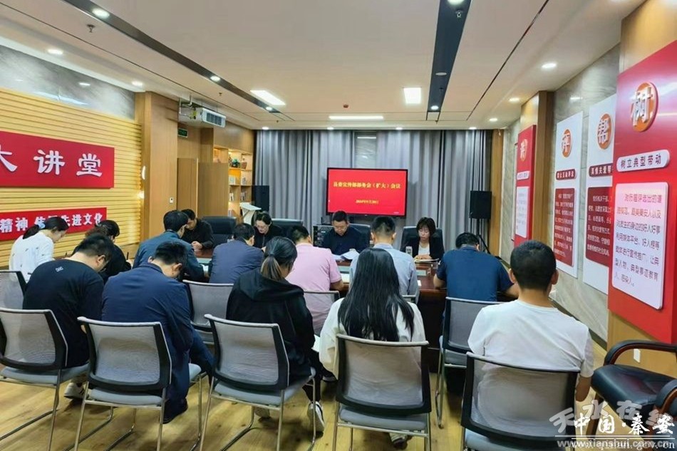 9月20日,秦安县委宣传部召开部务会(扩大)会议,传达学习习近平总书记视察甘肃重要讲话和指示精神、习近平总书记在全面推动黄河流域生态保护和高质量发展座谈会上的重要讲话精神,以及省、市、县委相关会议精神,安排部署学习宣传和贯彻落实工作。县委常委、宣传部部长马昊莹主持会议并讲话。