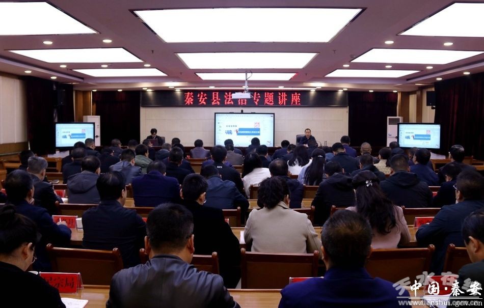 11月6日,秦安县法治专题讲座举行,邀请县政府法律顾问单位甘肃端方律师事务所马强强律师授课,县政府副县长、公安局局长赵智彦主持讲座。