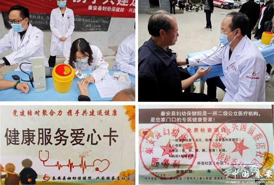 活动现场,秦安县妇幼保健院医务人员耐心地为社区居民进行量血压、测血糖、测脉搏等项目,并结合老人们的生活习惯讲解如何预防和调理高血压等一些老年常见疾病,热情地对老人们提出的各种问题进行答疑解惑后开具处方、发放健康宣传资料,同时为60岁以上老人发放健康爱心卡,持爱心卡可以在县妇幼保健院免费进行一般体格检查(血压、脉搏、血氧饱和度测定)、心电图、腹部(肝、胆、脾、胰、双肾)彩超、胸部X射线检查。