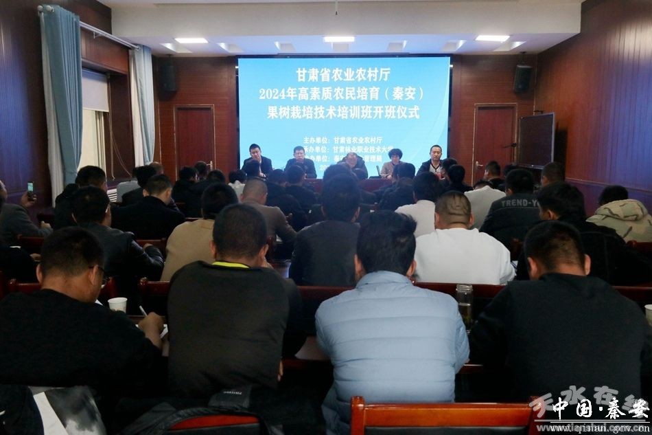 11月15日,秦安县2024年高素质农民培育果树栽培技术培训班在县果业局举行开班仪式。省农业农村厅农村社会事业促进处二级调研员王浩,甘肃林业职业技术大学党委委员、副院长闫秀婧,县委常委、副县长杨成出席开班仪式,秦安县雪原果品有限责任公司、果树种植大户及果树种植爱好者参加培训。